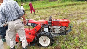 話し戻しまして、その耕運機が新たな田んぼで再デビューとなりました。