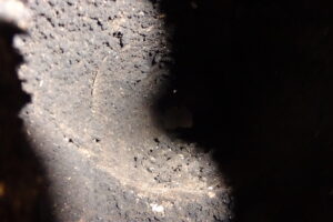 中をのぞけば、御覧の通り。煤びっしりです。