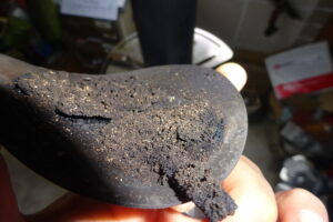 掃除口を外してみてみると、びっしりと煤が付いております。