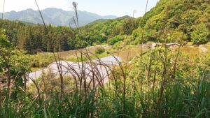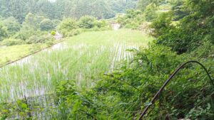 周辺の田んぼは既に田植えも終わって、太陽をたっぷり浴びた棚田が広がります。