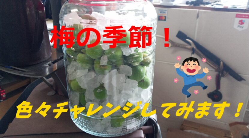 傘で拾って、梅シロップを作ってみます。梅干しにもチャレンジしようかと。
