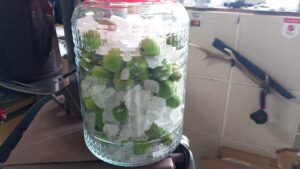 こないだ収穫した梅で、梅干しも漬けてみます。