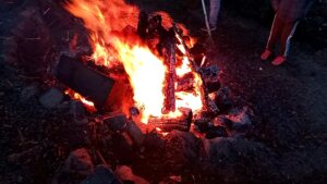恒例の正月明けの行事、どんど火にあたり無病息災を願います。